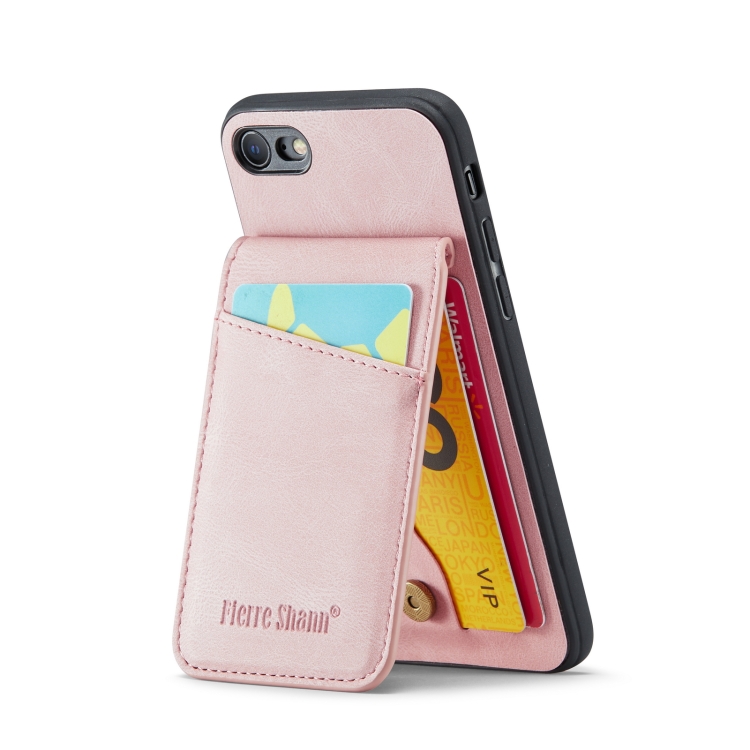 Funda de teléfono Fierre Shann Crazy Horse para iPhone SE 2022/2020/7/8 con tarjetero y contraportada PU (Rosa)