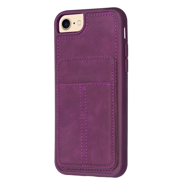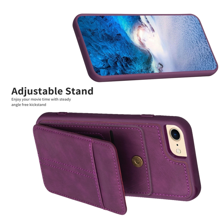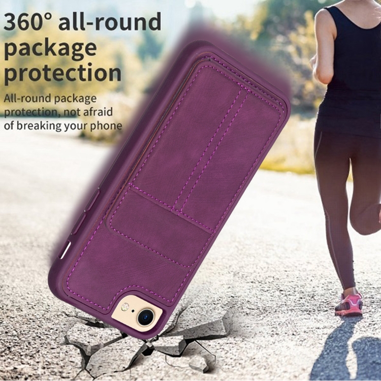 Estuche para Teléfono Bf28 para iPhone SE 2022/2020/8/7/6 con Bolsa para Tarjeta y Soporte (Púrpura Oscuro)