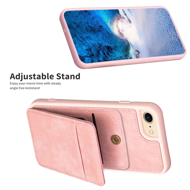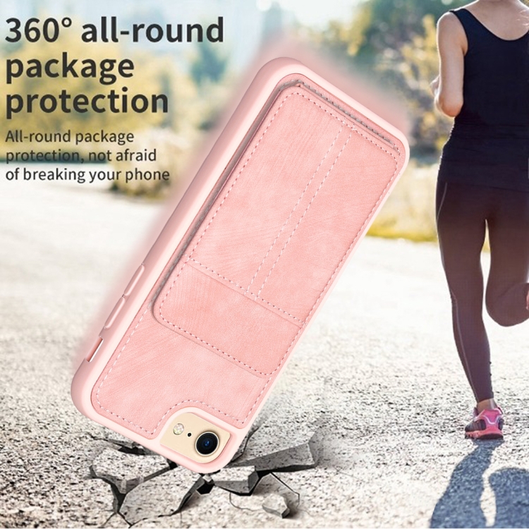 Estuche para Teléfono Bf28 para iPhone Se 2022/2020/8/7/6 con Bolsa para Tarjeta Esmerilada y Soporte (Rosa)