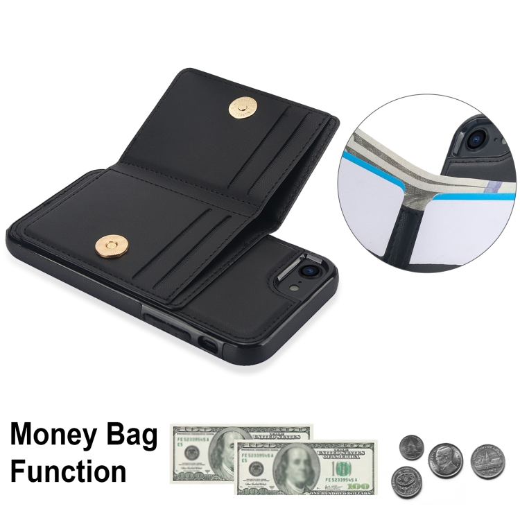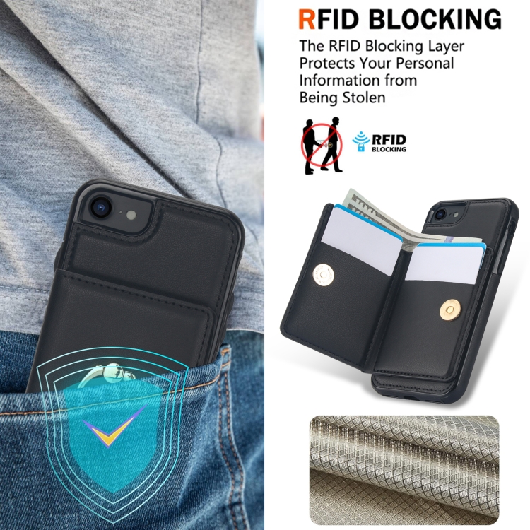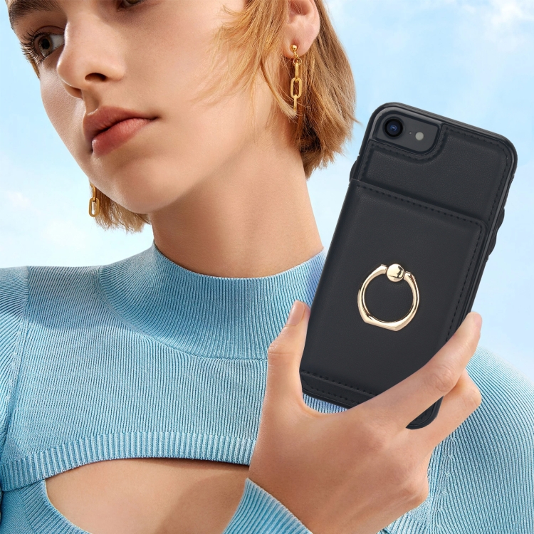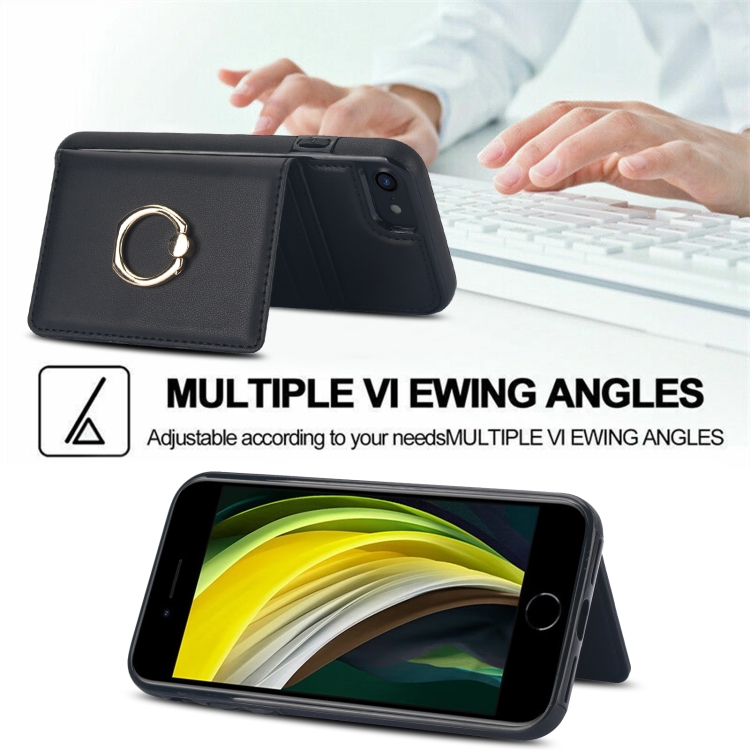 Estuche para teléfono iPhone SE 2022/SE 2020/6/7/8 con soporte anillo tarjeta antirrobo RFID (Negro)