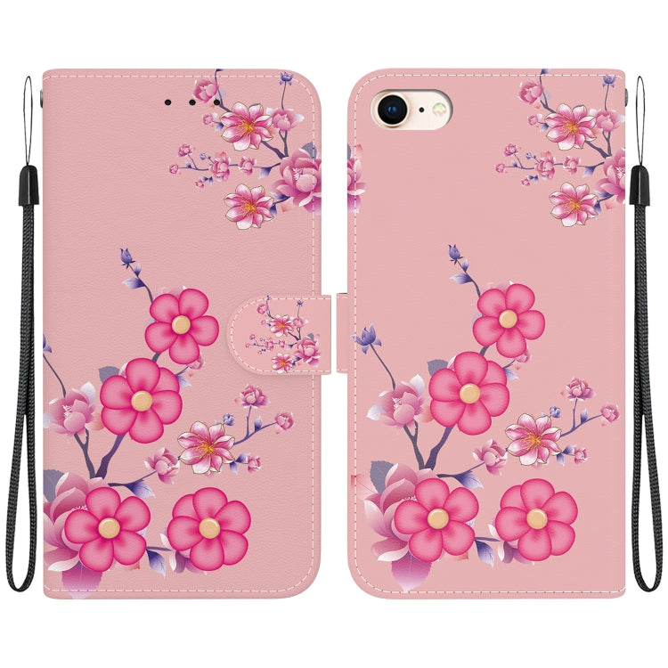 Funda para Teléfono iPhone SE 2022/SE 2020 Cuero Dibujo Coloreado Textura Cristal (Flores de Cerezo)