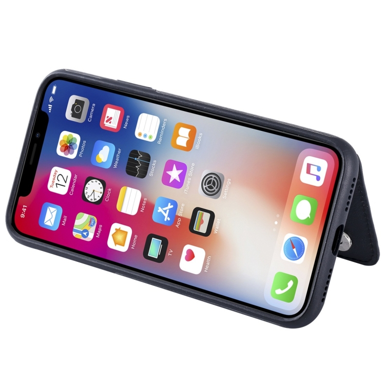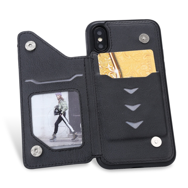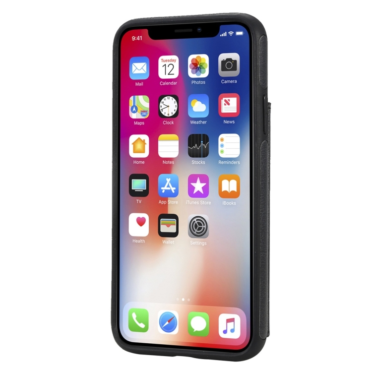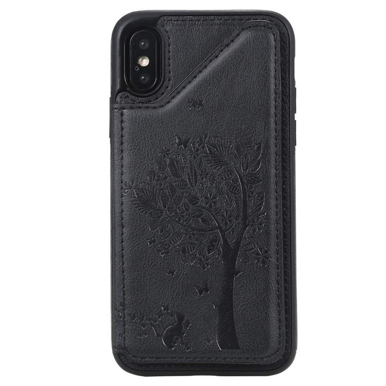 Estuche protector para iPhone X Cat Tree a prueba de golpes con ranuras para tarjetas y marco de fotos (Negro)