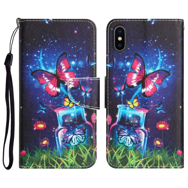 Estuche de Teléfono iPhone X Cuero Dibujo Coloreado Mariposa de Botella