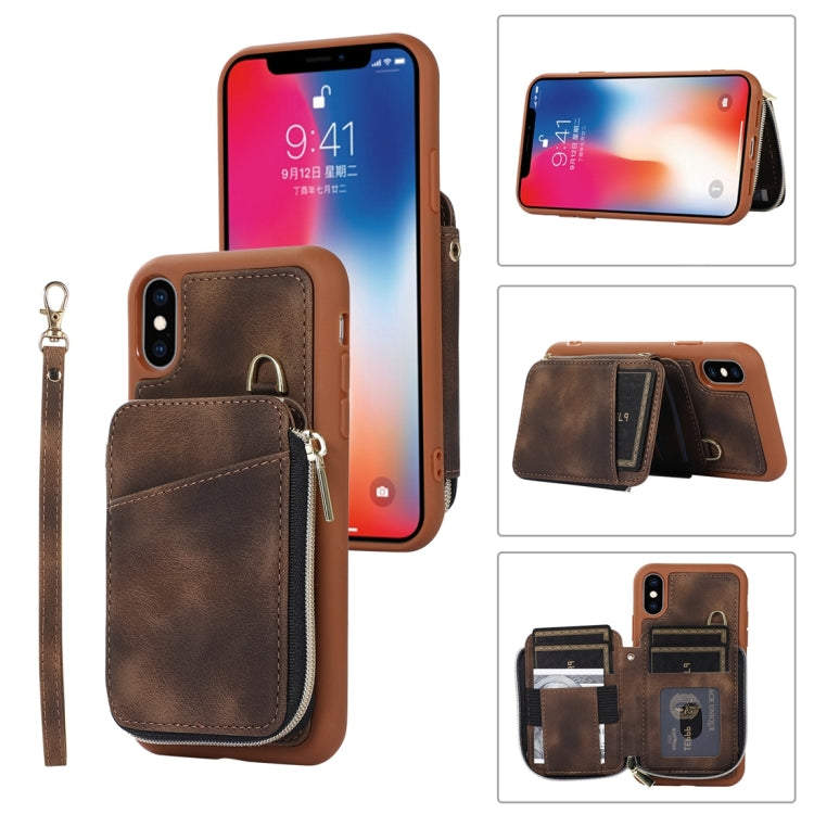 Funda Trasera con Bolsa de Tarjeta y Cremallera para iPhone X / Xs (Marrón)