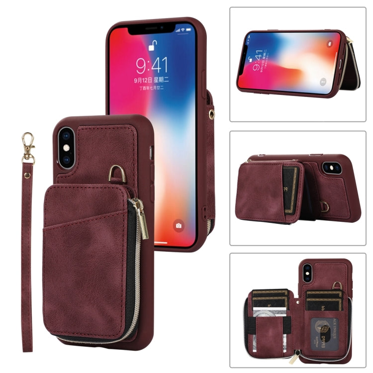 Funda Trasera para Teléfono Bolsa de Tarjeta con Cremallera para iPhone X Xs (Rojo Vino)