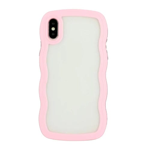 Funda para iPhone X Xs Candy Color Wave TPU Clear PC Phone Case (Rosa)
