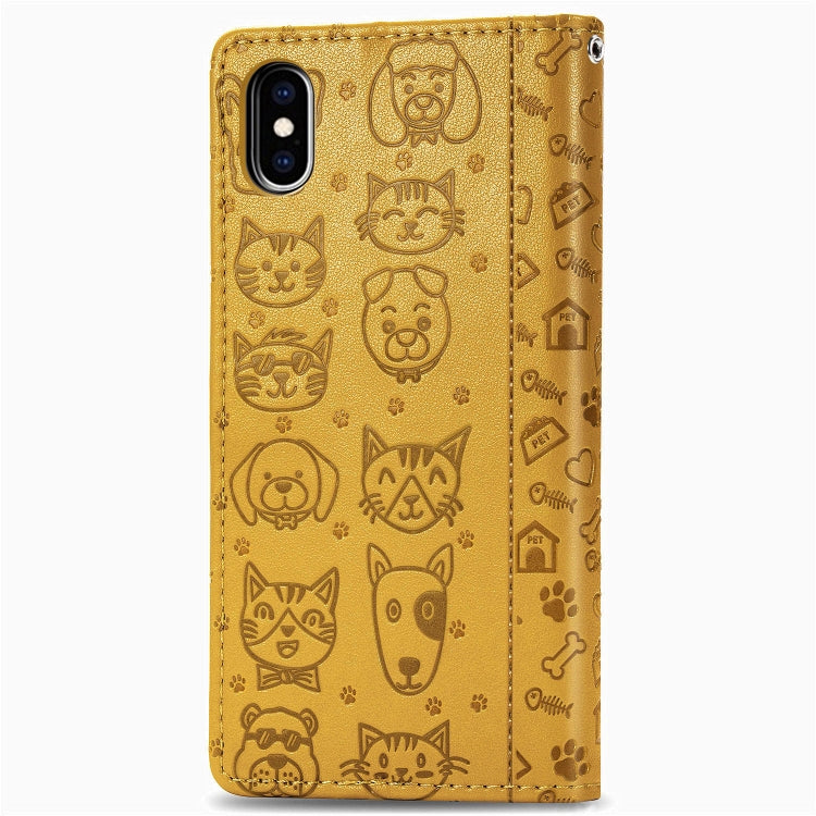 Funda para iPhone X Xs Cute Cat And Dog Cuero PU Tapa Horizontal Soporte Ranura Tarjeta Billetera Cordón (Amarillo)