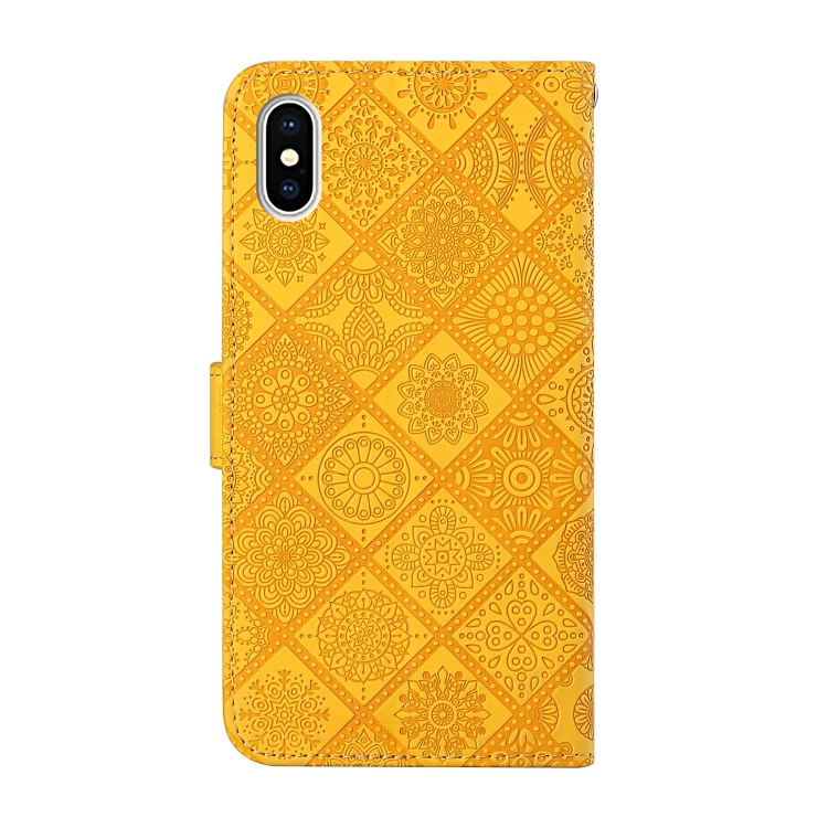 Estuche de Cuero para iPhone X Xs con Tapa Horizontal Patrón Étnico Soporte Ranuras Tarjetas Billetera Cordón (Amarillo)