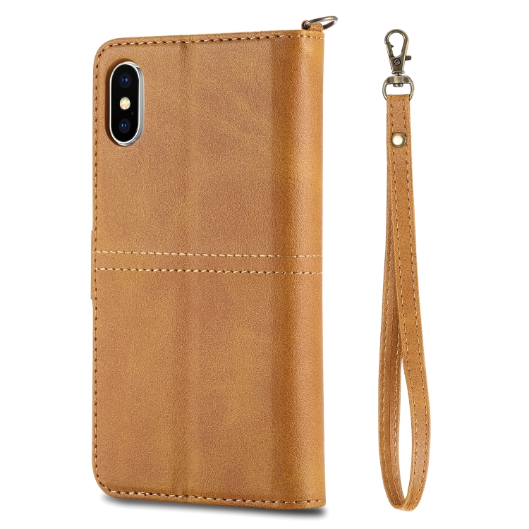 Estuche de Cuero iPhone X Xs Tapa Horizontal Magnética Multifuncional Ranuras Tarjetas Soporte Billetera Marco Fotos (Marrón)