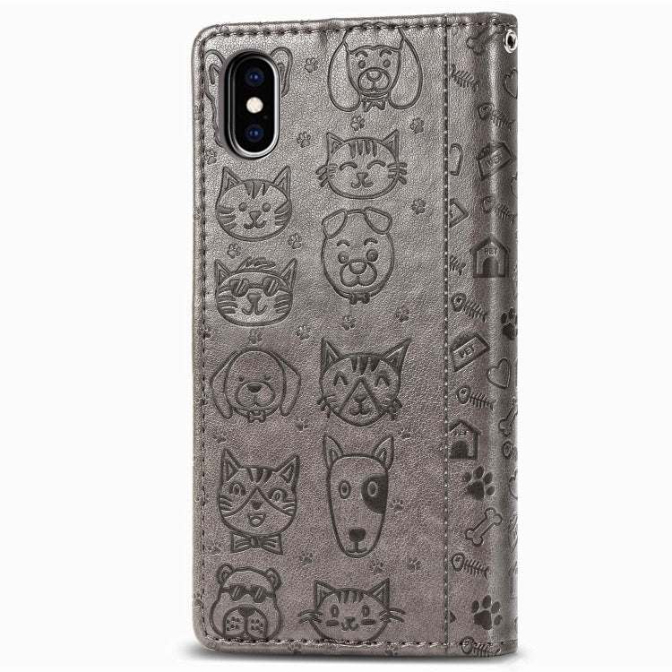 Estuche para iPhone X Xs Cuero de Pu Tapa Horizontal Relieve Gato Perro Soporte Ranura Billetera Cordón (Gris)