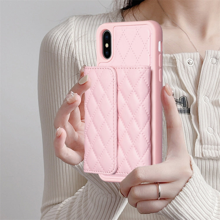 Estuche de teléfono iPhone X Xs Cuero Rómbico con Billetera Horizontal (Rosa)