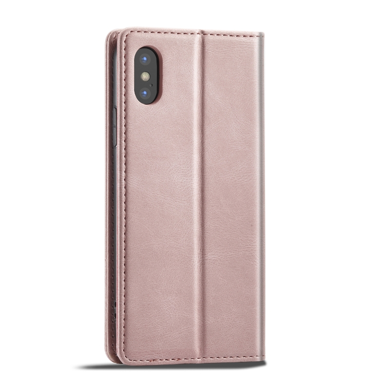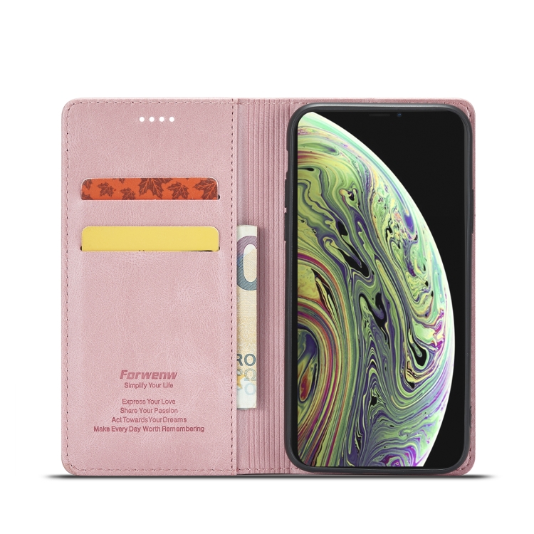 Estuche de Cuero FoRWenw F2 Series para iPhone X Xs con Tapa Horizontal Magnética Soporte y Ranuras para Tarjetas Billetera (Oro Rosa)