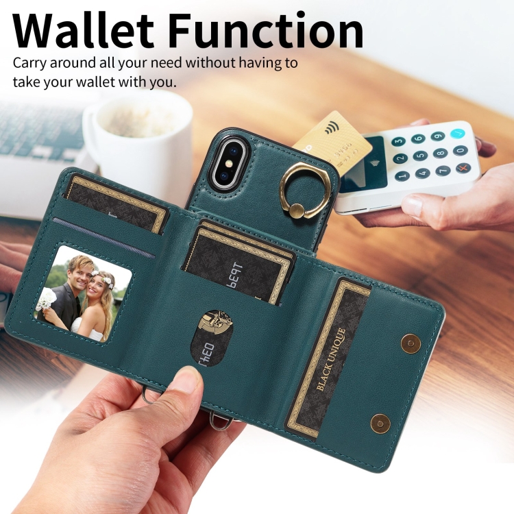 Funda Cruzada para Teléfono iPhone X Xs con Soporte para Anillo y Tarjeta (Verde)