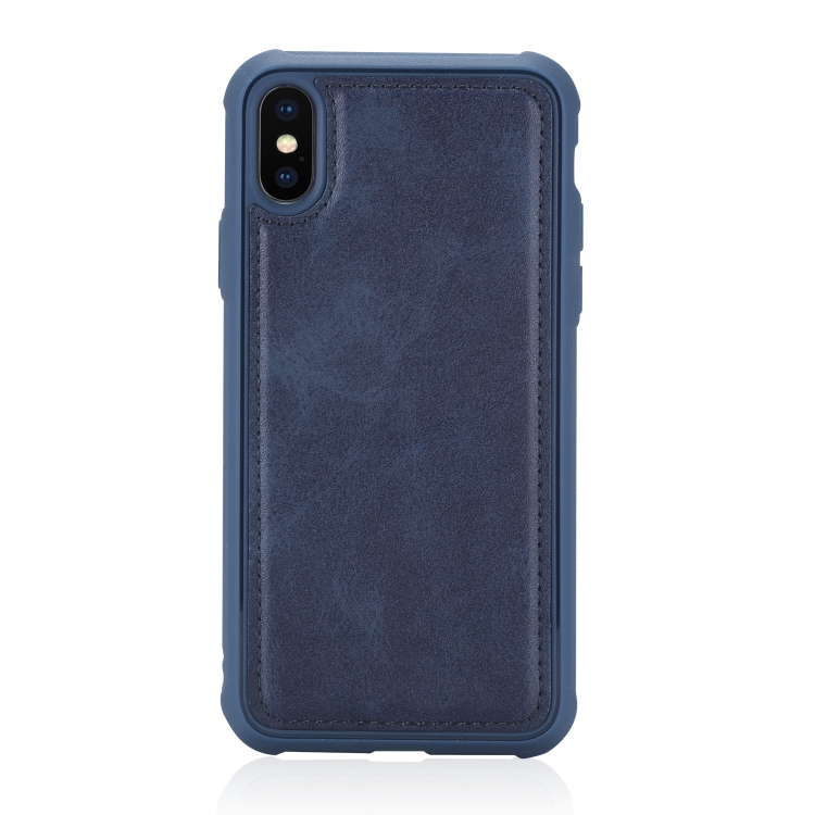 Funda de Cuero iPhone X / Xs con Tapa Horizontal Magnética Desmontable Multifuncional Ranuras para Tarjetas Soporte Billetera Marco de Fotos (Azul)