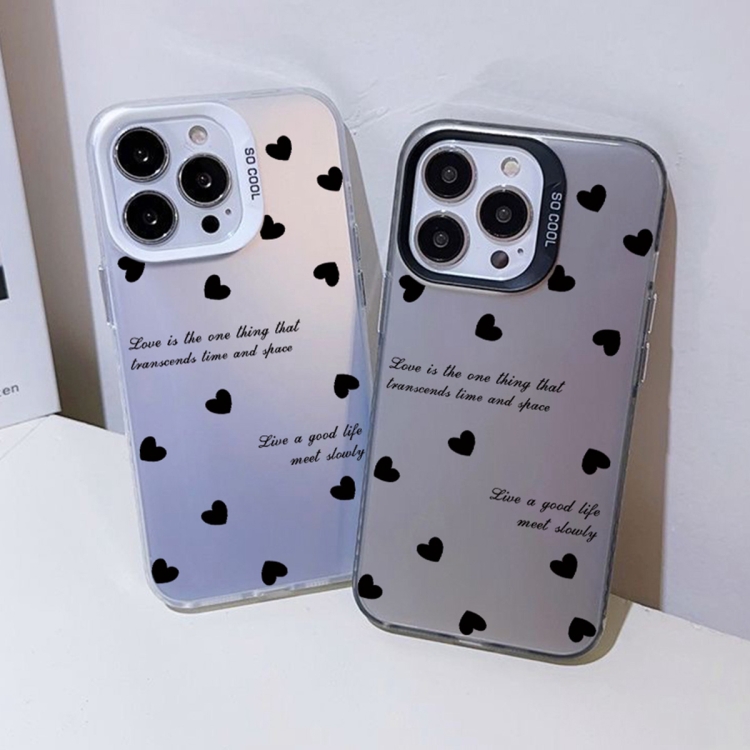 Funda híbrida para iPhone X Xs TPU con pintura plateada para PC corazones de amor blancos