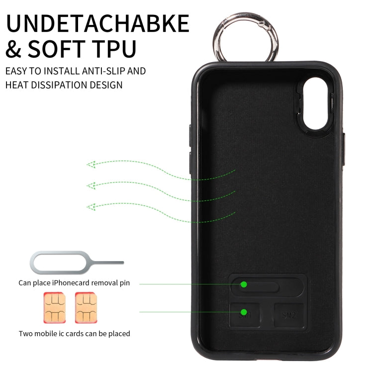 Funda para Teléfono iPhone X / Xs con Anillo y Ranura para Tarjeta con Textura de Pantorrilla (Marrón)