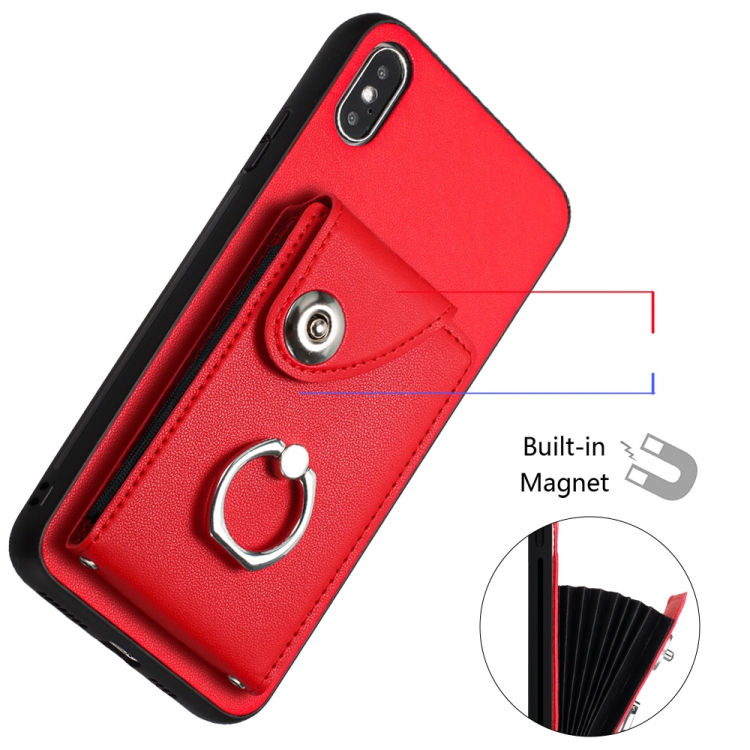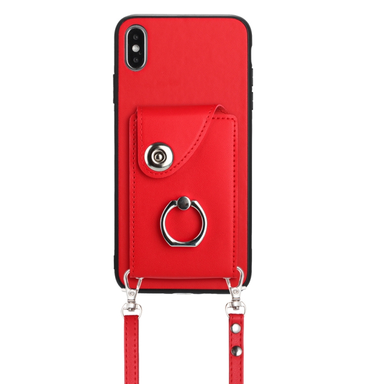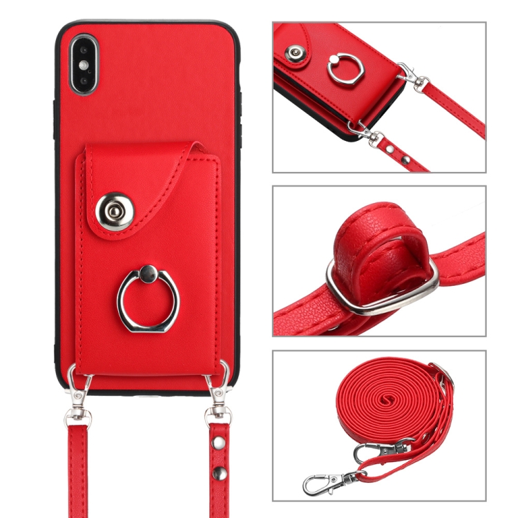 Funda para Teléfono iPhone X / Xs con Soporte para Anillo y Bolsa para Tarjeta con Cordón Largo (Rojo)