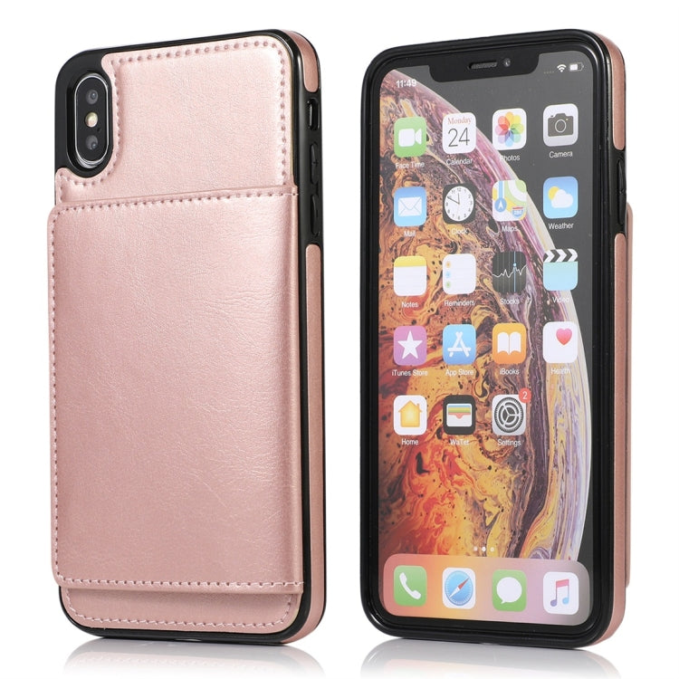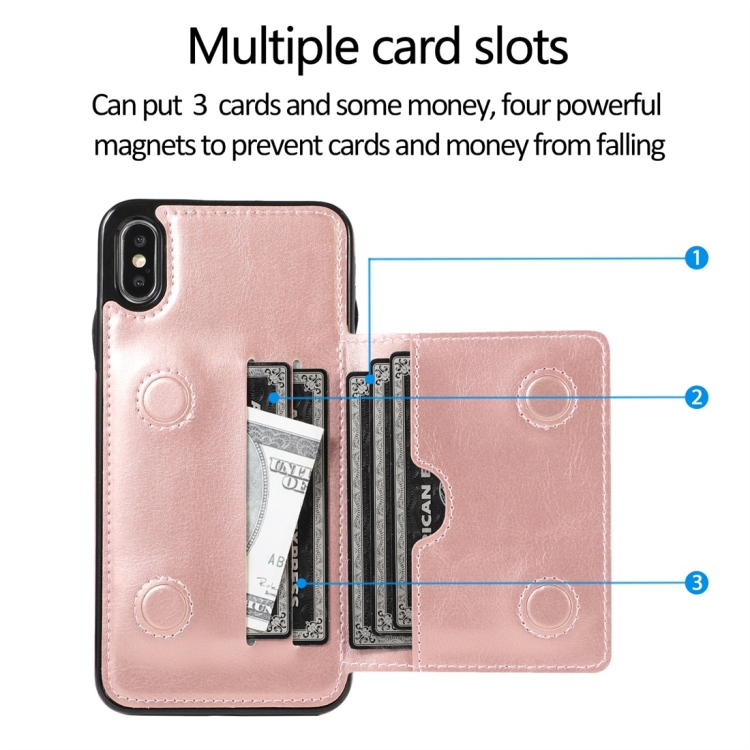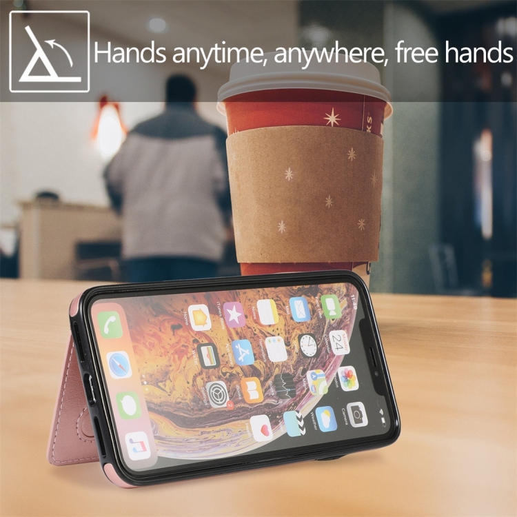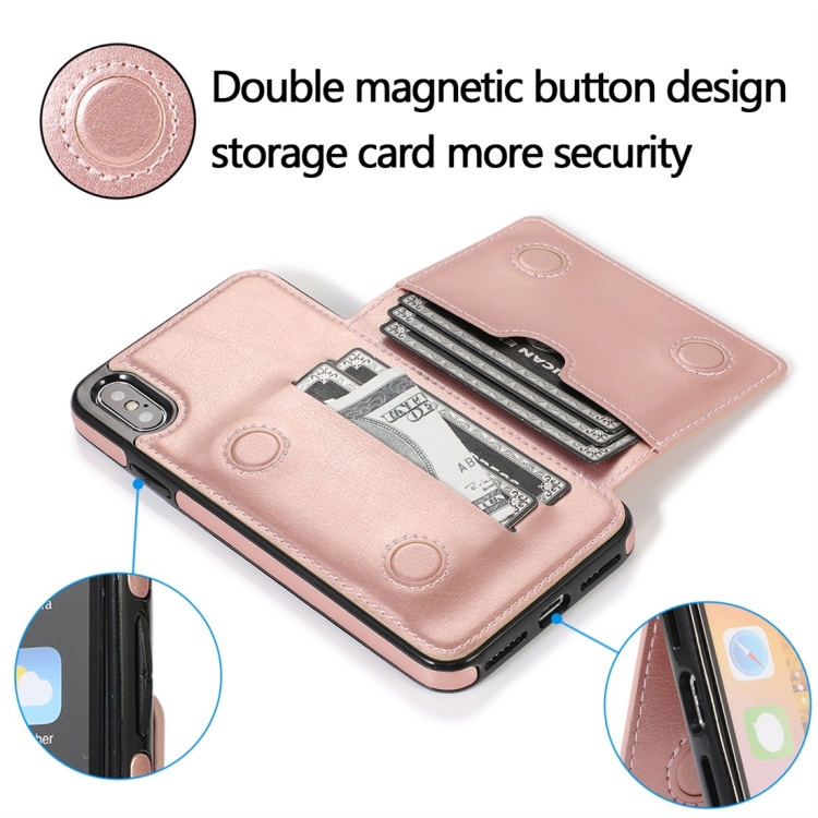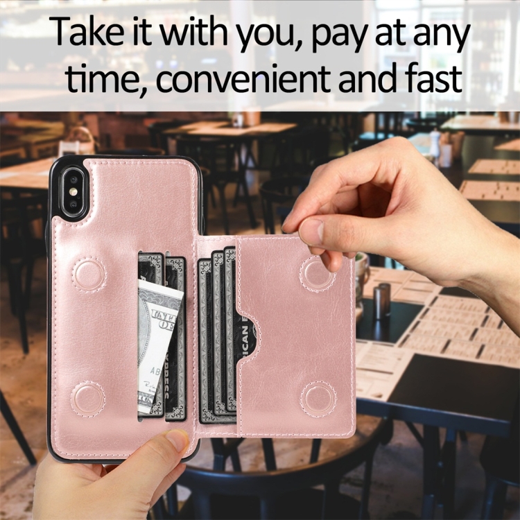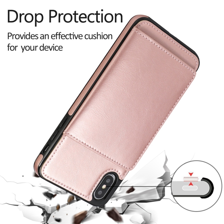Funda Protectora para iPhone X Xs Pu + TPU a Prueba de Golpes con Ranuras para Tarjetas y Soporte (Oro Rosa)