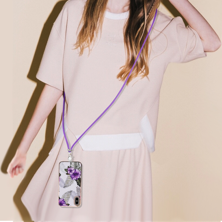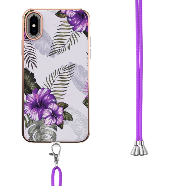 Estuche TPU para iPhone X Xs Galvanoplastia Patrón Imd a Prueba de Golpes con Cordón para El Cuello (Flor Púrpura)