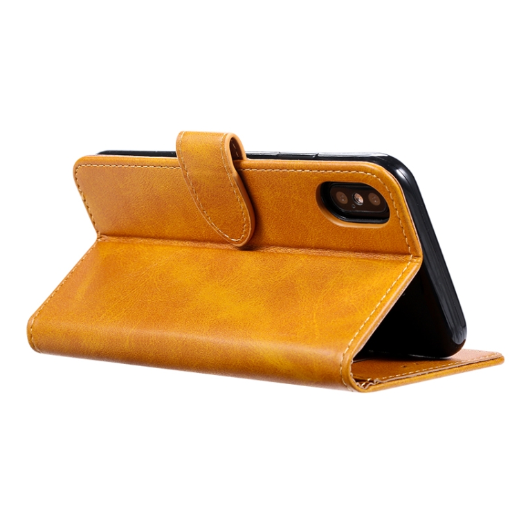 Estuche de Cuero Gussim para iPhone X Xs con Tapa Magnética Horizontal Soporte Ranuras Tarjetas Billetera (Marrón)