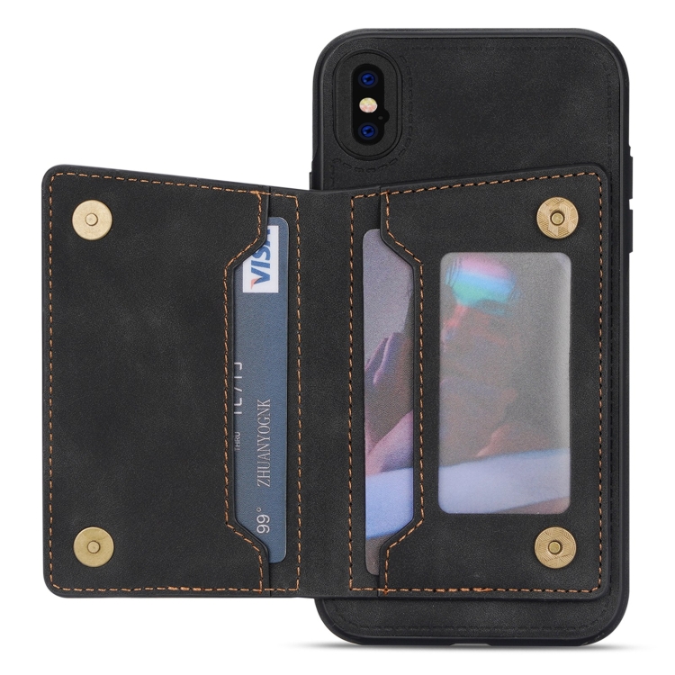 Funda para iPhone X Xs Line Card Holder Phone Case (Negro)