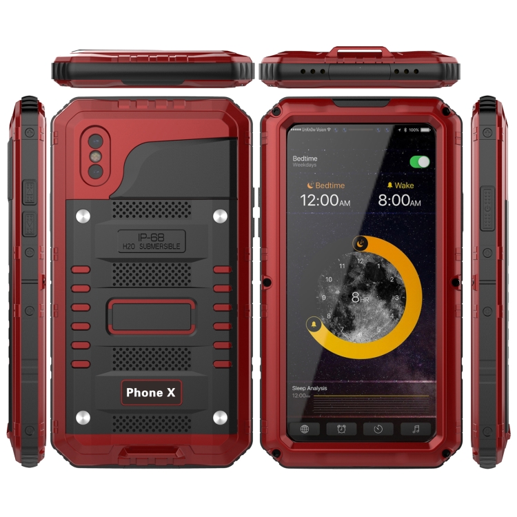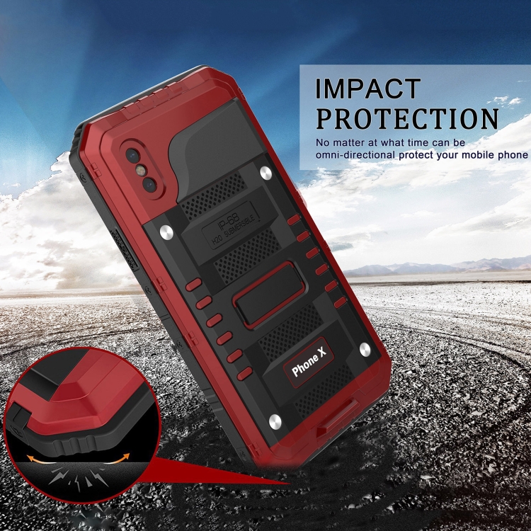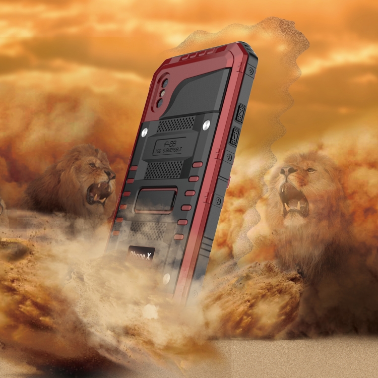 Carcasa Metal + Funda de Silicona para iPhone X / Xs con Protector de Pantalla (Rojo)