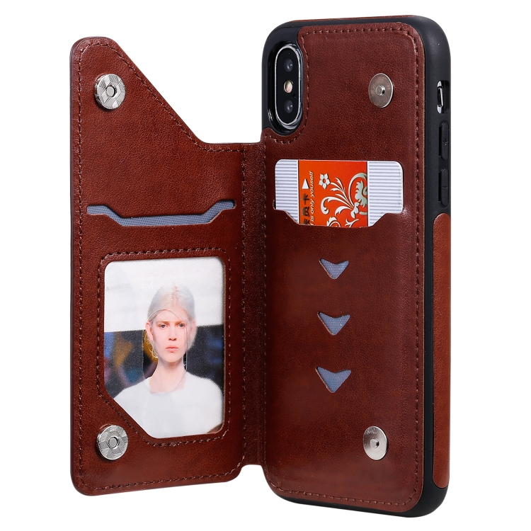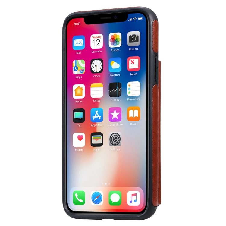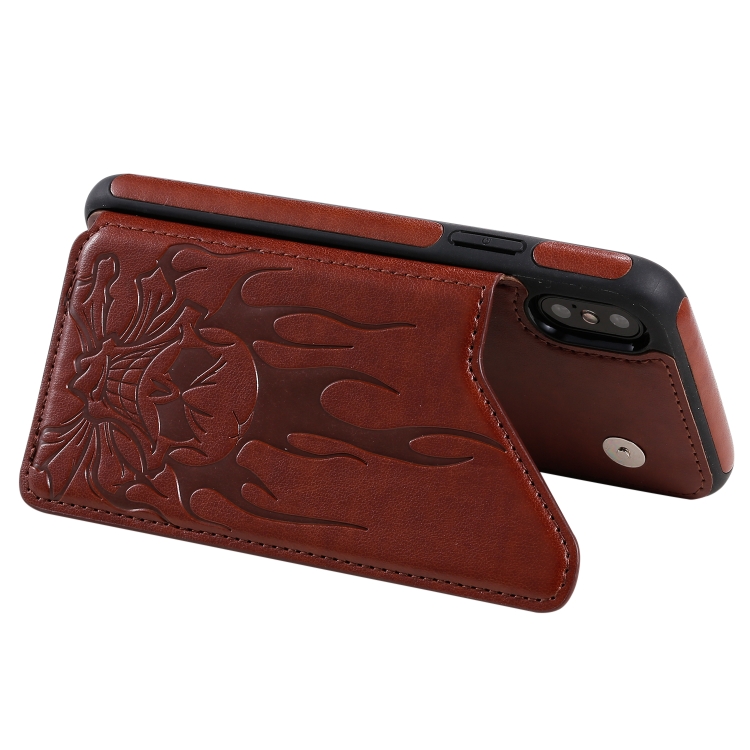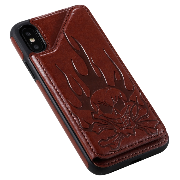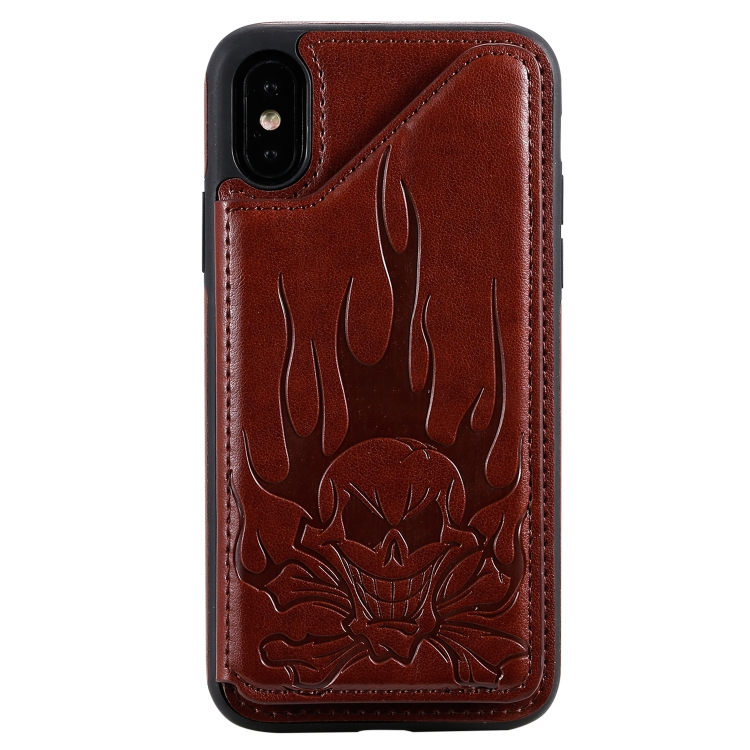 Estuche Protector para iPhone X / Xs Patrón Cabeza de Calavera a Prueba de Golpes con Soporte y Ranuras para Tarjetas y Billetera (Marrón)