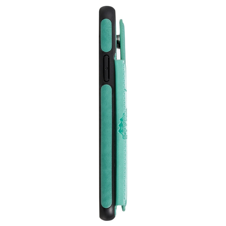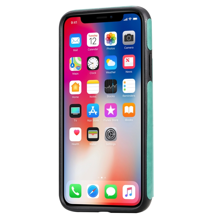 Estuche protector para iPhone X Xs a prueba de golpes con soporte y ranuras para tarjetas y billetera (Verde)