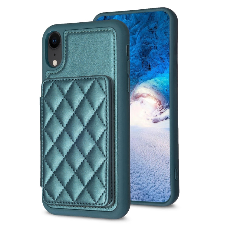 Funda para iPhone Xr Bf25 Square Plaid Card Bag Holder con Soporte para Tarjetas (Verde)