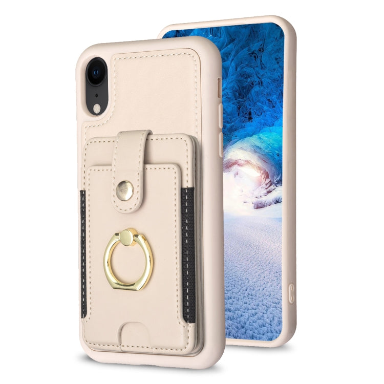 Funda para Teléfono Bf27 para iPhone Xr con Soporte para Tarjeta y Anillo de Metal (Beige)