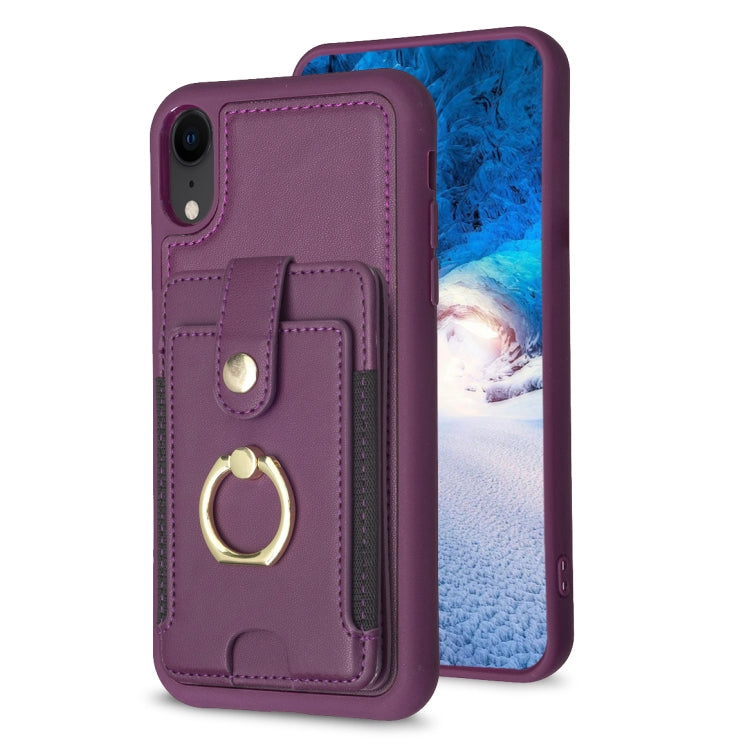 Funda para Teléfono Bf27 para iPhone Xr con Soporte para Tarjeta y Anillo de Metal (Púrpura Oscuro)