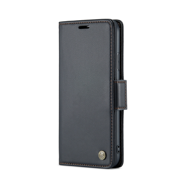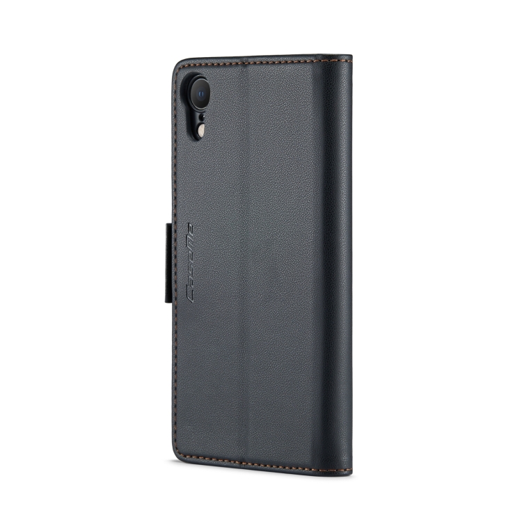 Funda de Cuero Caseme 023 para iPhone Xr con Textura Litchi, Hebilla Mariposa y Protección RFID (Negro)
