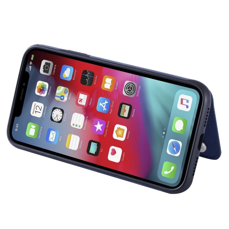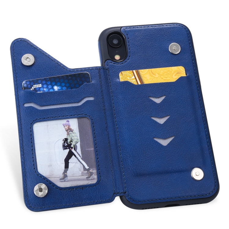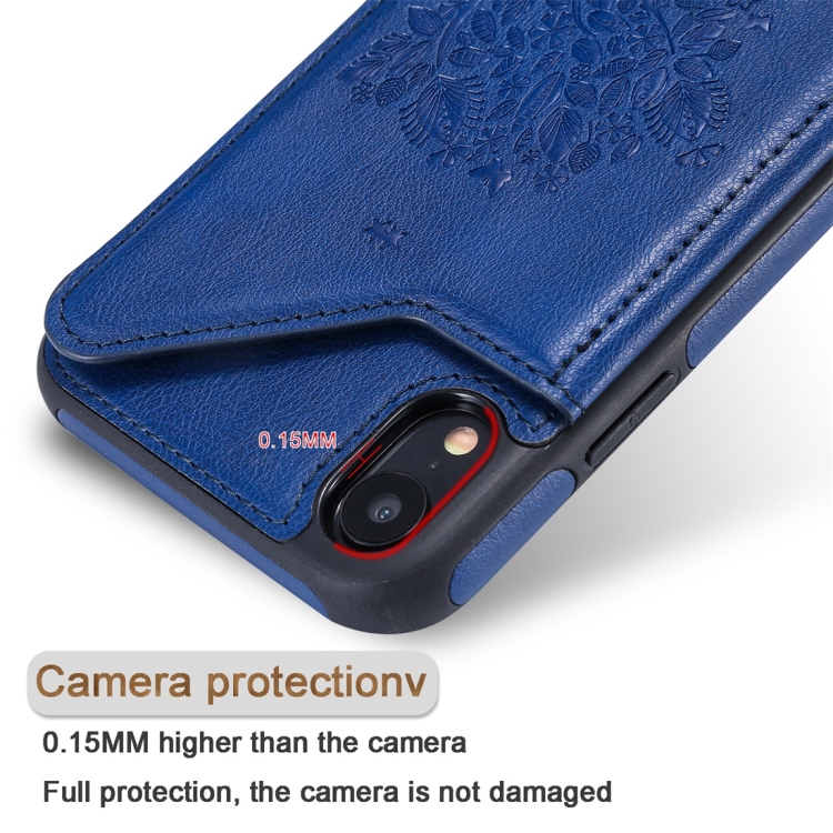 Estuche protector para iPhone Xr Cat Tree con patrón relieve, ranuras para tarjetas y marco de fotos (Azul)