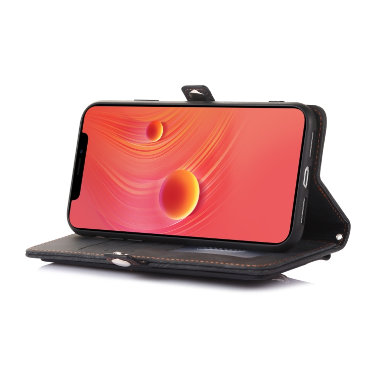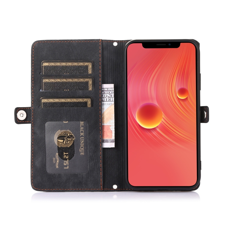 Funda de Cuero para Teléfono iPhone Xr Cremallera Ranura para Tarjeta Hebilla (Negro)