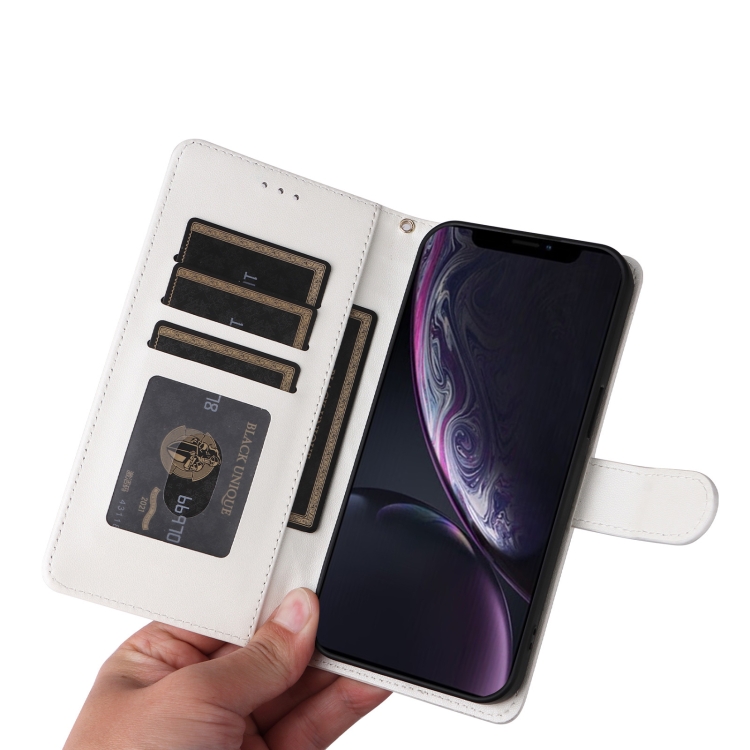 Funda para iPhone Xr Diamond Lattice de Cuero con Tapa para Teléfono (Blanco)