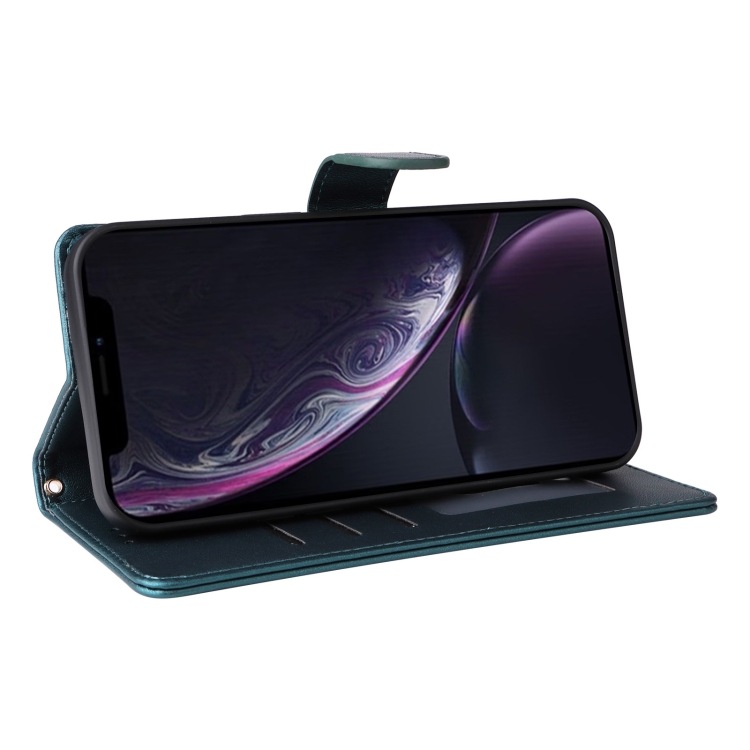 Funda para iPhone Xr Diamond Lattice de Cuero con Tapa (Verde)