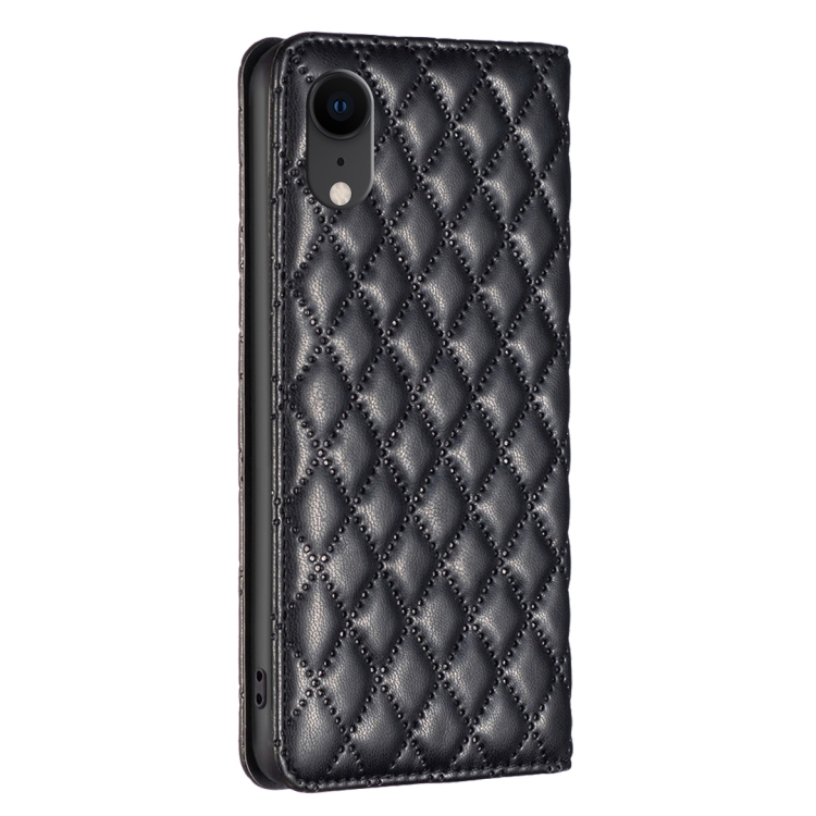 Funda de Teléfono para iPhone Xr Diamond Lattice con Tapa de Cuero Magnético (Negro)