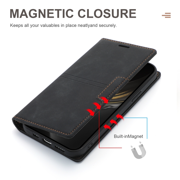 Funda para iPhone Xr Dream Magnetic Suction de Cuero PU con Tapa Horizontal, Soporte, Ranura para Tarjeta y Billetera (Negro)