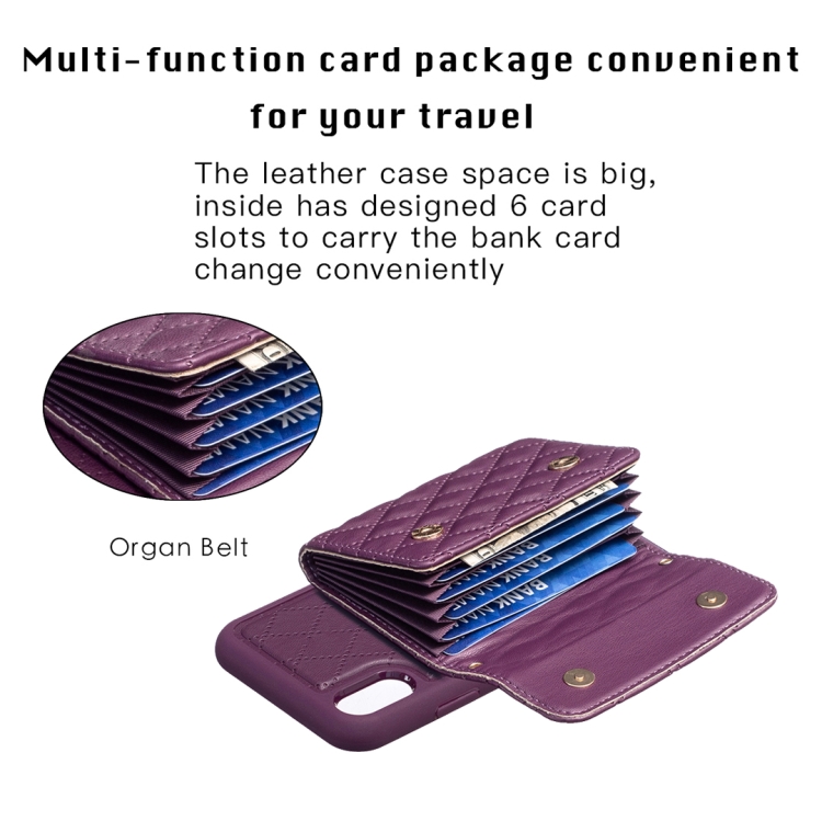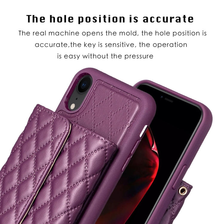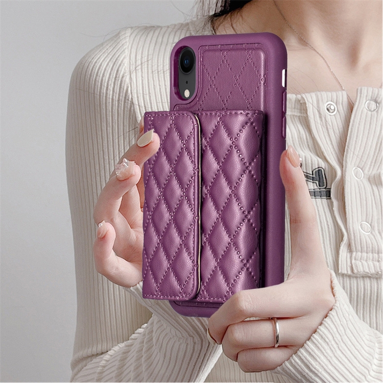 Estuche de Teléfono Cuero Rómbico con Billetera Horizontal para iPhone Xr (Púrpura Oscuro)