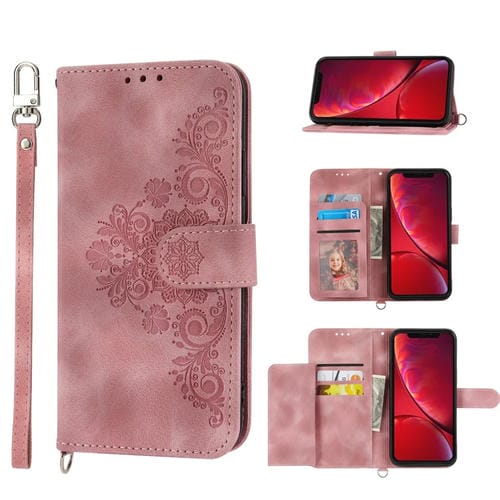 Estuche para teléfono iPhone Xr Cuero con Billetera en relieve de flores (Rosa)