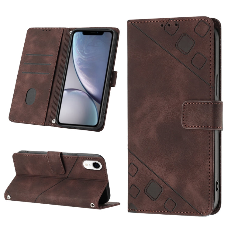 Estuche para Teléfono iPhone Xr Cuero En Relieve Sensación de Piel (Marrón)