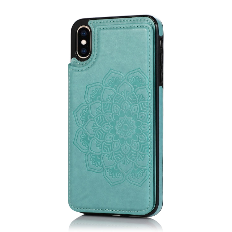 Estuche Protector iPhone Xr PU TPU Mandala Doble Hebilla Ranuras Soporte Marco (Verde)