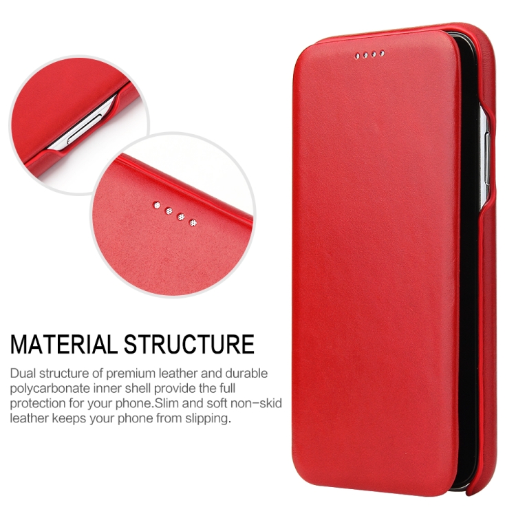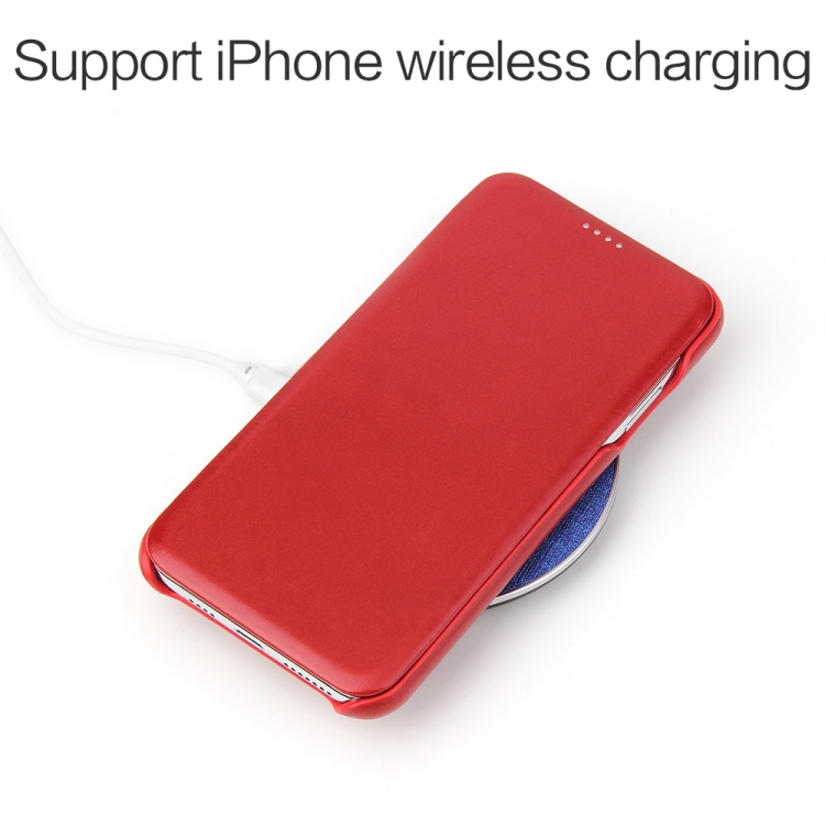 Funda para iPhone Xr Fierre Shann Business Cuero Genuino Tapa Horizontal Magnética (Rojo)