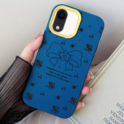 Funda híbrida para teléfono iPhone Xr Floral Bow PC TPU (Azul Real)