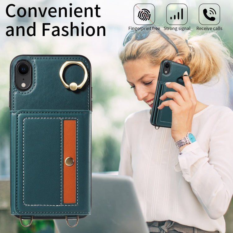 Funda para iPhone Xr Cuero con Soporte para Anillo y Tarjeta Cruzada (Verde)