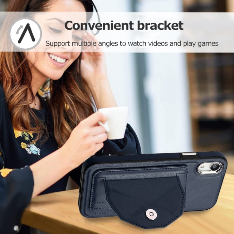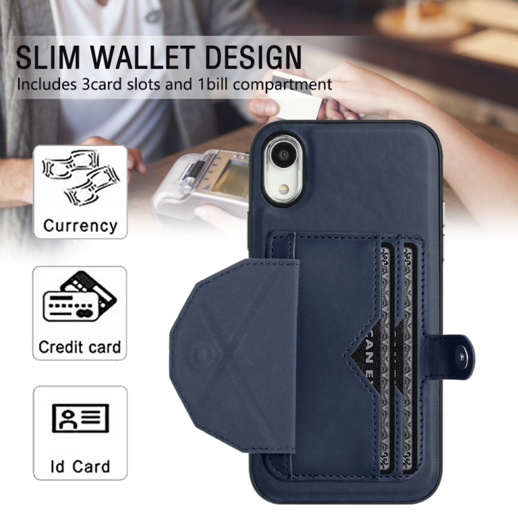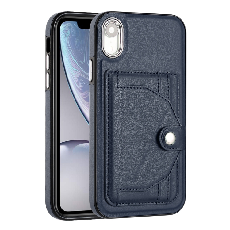 Funda de teléfono iPhone Xr cuero a prueba de golpes con tarjetero (Azul)