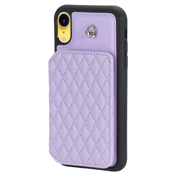 Funda para Teléfono iPhone Xr Bolsa para Tarjetas Textura de Rejilla con Cordón (Púrpura)