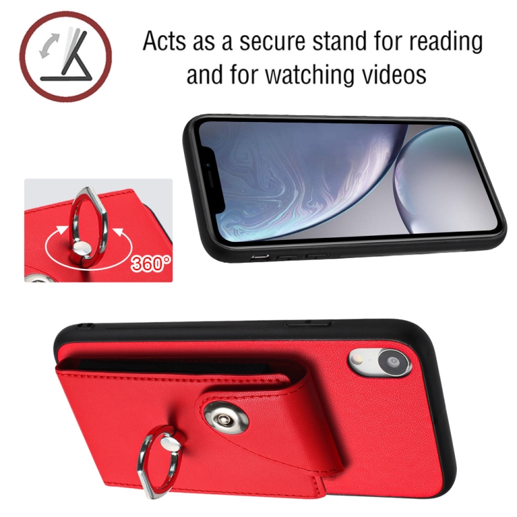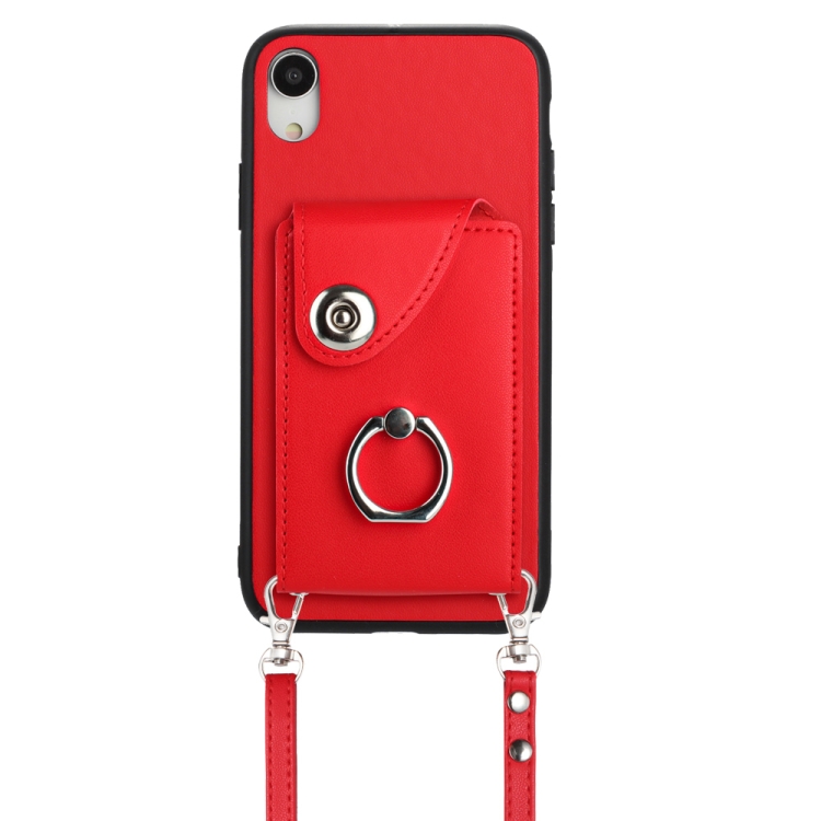 Funda para Teléfono iPhone Xr con Soporte para Anillo y Bolsa para Tarjeta con Cordón Largo (Rojo)