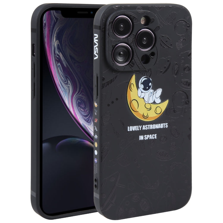 Funda de teléfono para iPhone Xr Patrón de Astronauta Borde Recto Silicona (Negro)