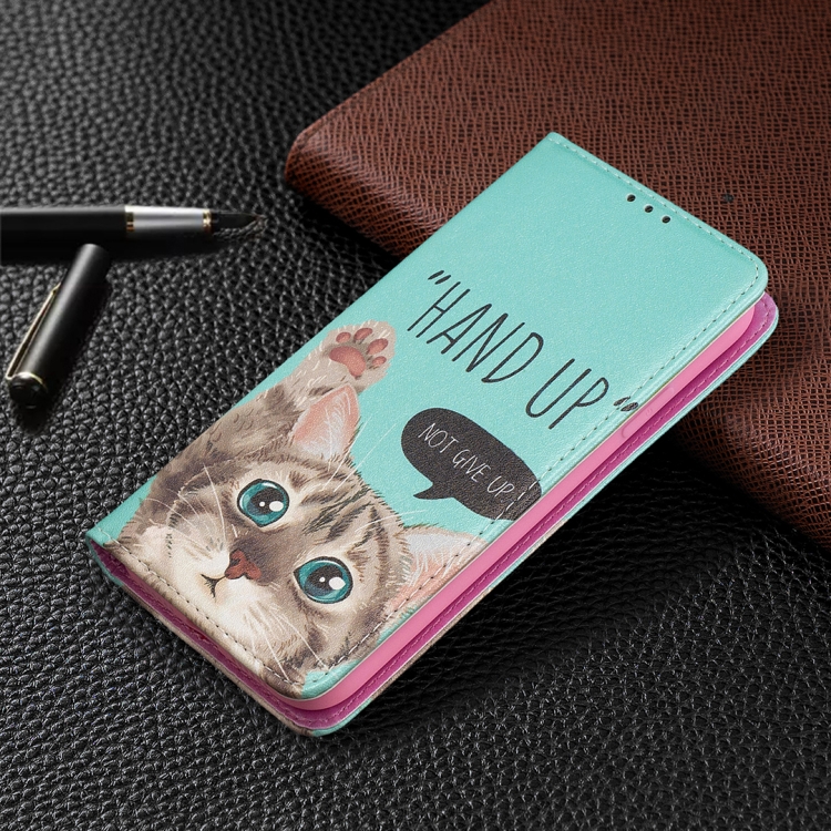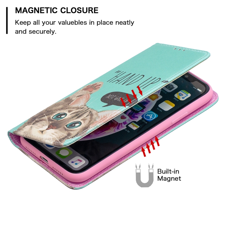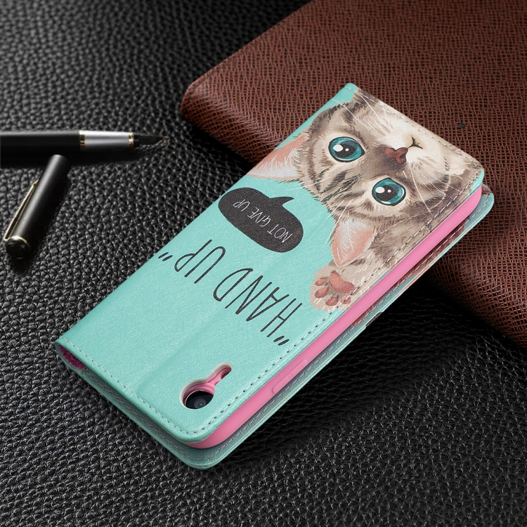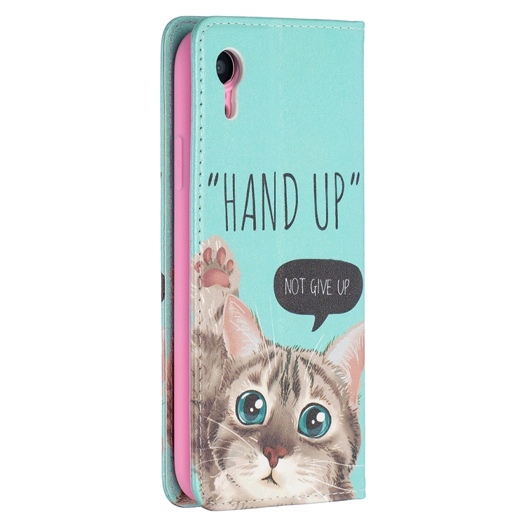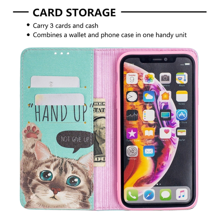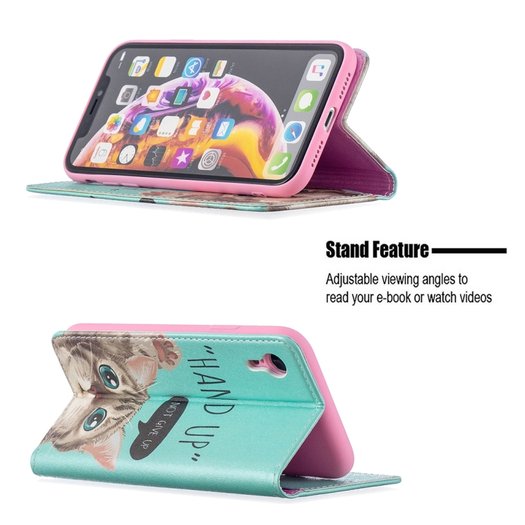 Funda de Cuero de Pu para iPhone Xr con Tapa Horizontal Magnética Invisible Soporte Ranuras Tarjetas Billetera (Gato)